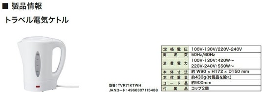 インテリア家電製品および、PCサプライ品の製造販売を手掛ける株式会社ヤザワコーポレーションは、トラベル電気ケトルを4月下旬頃に発売いたします。