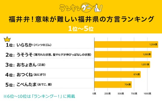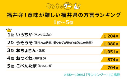 ランキングー!では福井弁をピックアップし、意味が難しい福井県の方言ランキングを調査。全年代の男女(性別回答しないを含む)9,632名にアンケートを行い、TOP10を決定しました。ここではTOP5をご紹介します。