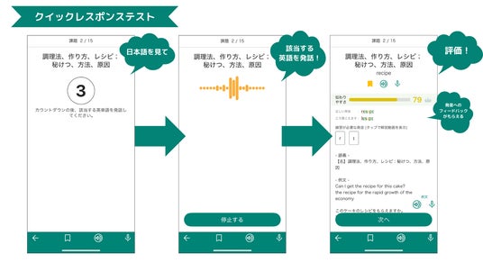 「クイックレスポンス」(日本語を読み・聞き、それをすぐ英語にして答える)を行える機能を搭載。