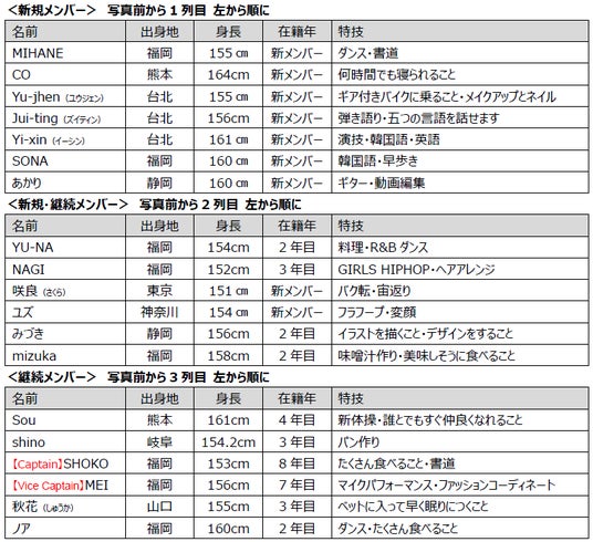 メンバーの選考にあたり、さらに進化したパフォーマンスを披露するために国内外問わず幅広くメンバーを募集することを目的に、東京、福岡に加え、球団初の試みとなる海外(台北)でオーディションを実施しました。特技披露、ダンス審査、面接などを経て、台北出身の3名を含む多彩な経歴と高い技術力を持ったメンバーが選ばれました。