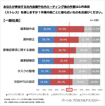 あなたが参加する社内会議や社内ミーティングの準備作業は心的負担(ストレス)を感じますか?
