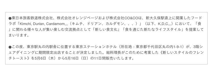 「食」に関わる様々な人が集い楽しむ交流拠点であるK,D,C,,, と東京ステーションホテルが連携し、多国籍なグルメ・カルチャーを楽しむことができる新大久保で新たな取り組みを行います。