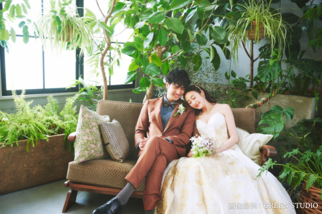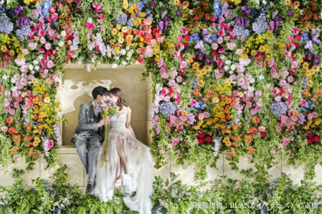 数年前から注目されている、カラフルな花に囲まれて撮影できる「フラワーウォール」ですが、導入するスタジオが徐々に増えています。ナチュラルテイストの撮影ブームから派生してボタニカルな世界観にも人気が集まっています。そして、2022年注目された韓流スターの結婚写真の影響もあり、撮影を希望される方が増えていると考えられます。