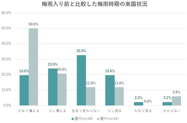 つぎに、梅雨時期の来場者数について梅雨入り前の5月下旬~6月上旬頃と比べてどう変化するのか尋ねました。