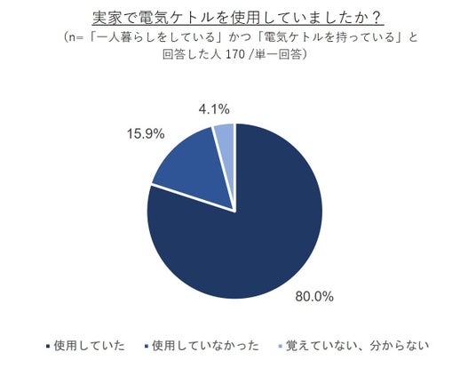 - 現在一人暮らしで電気ケトルを持っている人のうち、実家で電気ケトルを使用していなかったと答えた人は15.9%。
