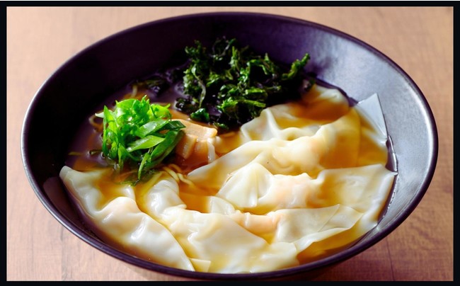 浅利の旨みが隠し味の海鮮系出汁の特製らーめんと共に味わえる自慢の自家製海老ワンタンは、店内仕込みの自慢の逸品。ぷりぷり海老で食感も楽しく、つるつるっとのど越しも抜群!麺の表面を覆いつくすほどに7枚も入った贅沢な一杯です。
