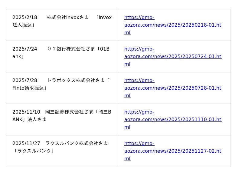 <直近の「BaaS byGMOあおぞら」導入事例>