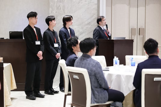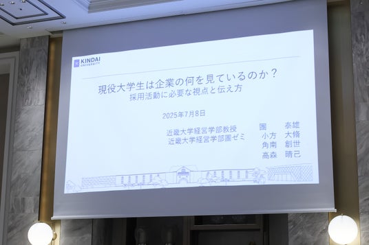 プログラムの一環として、近畿大学 経営学部の團 泰雄教授と学生たちが登壇。「Z世代が求める職場環境と価値観」をテーマに講演を行いました。