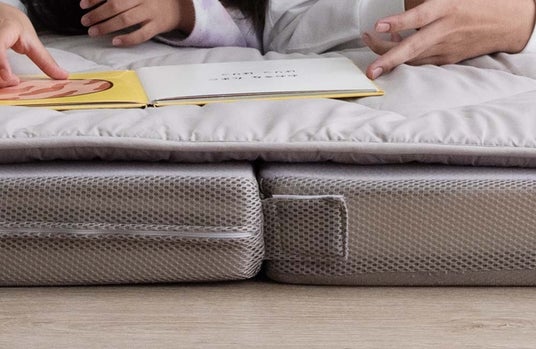折りたたみマットレス特有の段差を軽減し、より快適にお使いいただけます。特に、2枚のマットレスの連結部分に生じる段差も和らげる設計となっているため真ん中に寝る時にも気にならずそれぞれが十分なスペースを確保して眠ることができます。