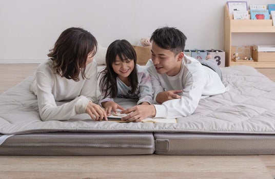(画像:新発売のファミリーサイズマットレスを実際に3人で使用したイメージ)