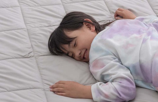 (画像:ふわふわの敷パッド付で安心快適に眠れるイメージ)