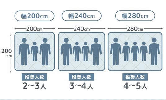 本製品は、幅200・240・280cmの3サイズ展開。どのサイズも家族全員で並んでゆったりと眠れる、広々としたファミリーサイズです。