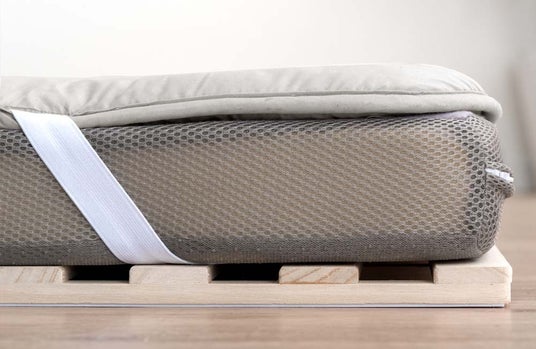 ふんわりとした中綿入りの専用敷パッドが、優しく体を包み込む寝心地を実現しています。