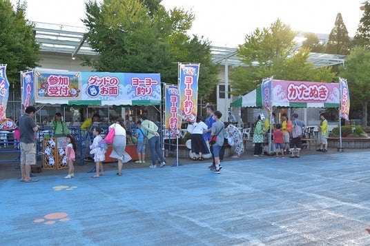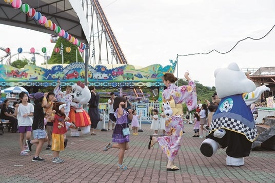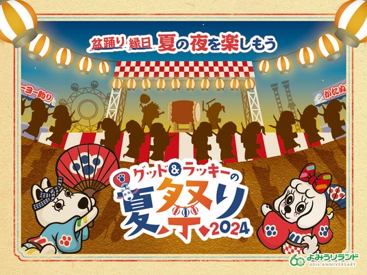 ヨーヨー釣り(100円/回)やかたぬき(100円/回)などの屋台の出店や、グッド&ラッキーと一緒に踊る参加型の盆踊りイベント「グッド&ラッキーの盆踊り」を開催します。イベントの詳細や各料金は公式サイト(https://www.yomiuriland.com/event/natsumatsuri2024/)をご確認ください。