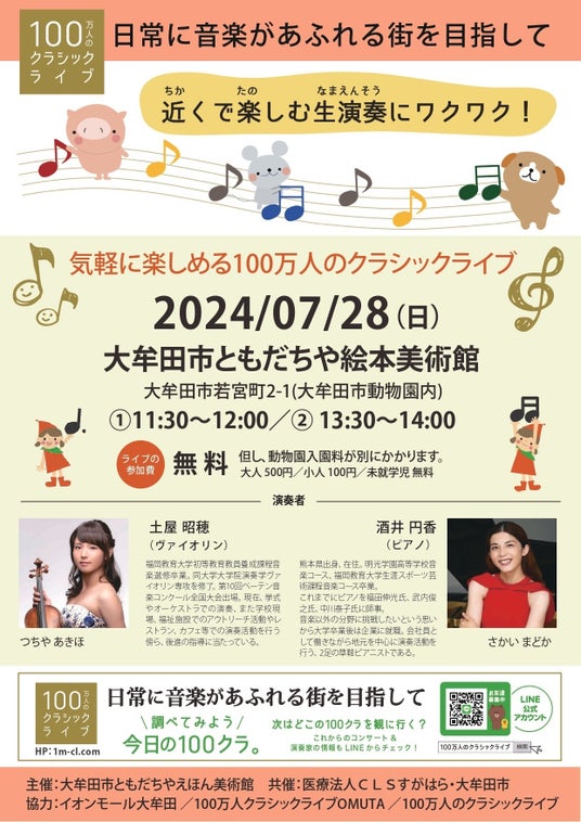 気軽に楽しめる100万人のクラシックライブをともだちや絵本美術館で開催!