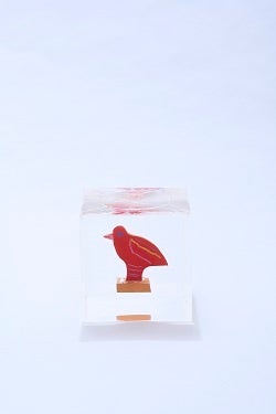 黒田征太郎氏の画風は、自由な線と色彩で描かれた生命力が特徴です。アトリエ、街中、旅先など場所を選ばず、クレヨン、鉛筆、ペン、水彩、油彩、木彫、エッチングなどさまざまな技法を用いて描く作品は30万点以上に上ります。アクリル作品は、黒田征太郎氏が、インテリアデザイナー倉俣史朗氏のアクリル製の名作椅子「ミス・ブランチ」に触発され、「アクリルという額の中に絵を入れたい」と思い立ったものです。アクリル樹脂で自身の絵や木彫など多彩な作品を固めたオブジェの制作を2016年より始め、新境地を開きました。堅牢で透明なアクリルは、光を閉じ込める、いわば透明な水の器です。