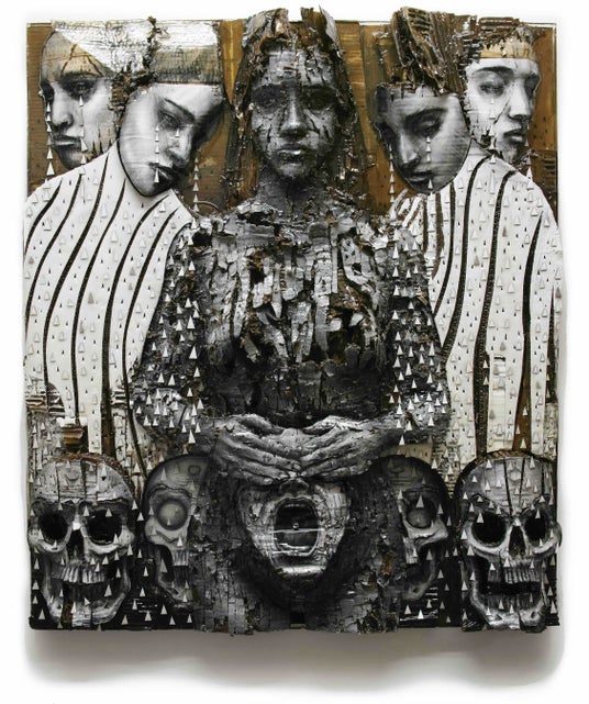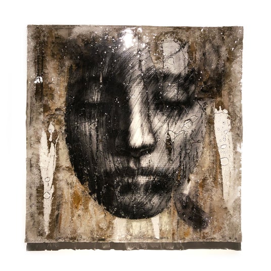 本展覧会では、ダンボールと樹脂を使った革新的な手法で描く馬場敬一の最新シリーズ「RESIN 死と再生」を展示しています。うつ病の苦しみから復活する過程を一つの物語として構築した作品群には、破壊、再生、そして再構築を通じた生命力が込められています。