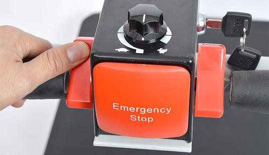 後進時にはアラームが鳴り、安全性にも配慮。緊急時には停止ボタンを押すだけで作動を停止できます。