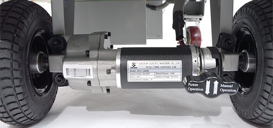 前輪には300Wの電動モーターを搭載し、丈夫なゴムタイヤで安定した走行をサポート。