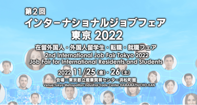 インターナショナルジョブフェア実行委員会(実行委員長:株式会社イノベント 取締役代表執行役社長 堀 正人)は2022年11月25日(金)・26日(土)、東京都立産業貿易センター 浜松町館にて、「第2回 インターナショナルジョブフェア東京 2022(在留外国人・外国人留学生 転職・就職フェア)」を開催いたします。