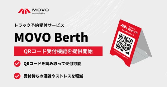データの力で物流課題を解決する株式会社Hacobuは、2025年9月2日より、トラック予約受付サービス「MOVO Berth(ムーボ・バース)」において、QRコード受付機能を提供開始いたします。これによりトラックドライバーは、物流拠点に設置されたQRコードをスマートフォンで読み取って受付可能となり、従来のタブレット入力待ちによる混雑やストレスを軽減します。さらに、物流拠点側にとっても受付業務の効率化につながります。