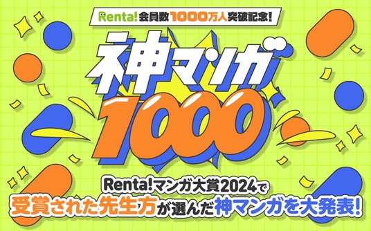 このたびRenta!では、会員数1000万人突破を記念してRenta!マンガ大賞2024の受賞著者が選ぶ神マンガ+スタッフ厳選の神マンガ計1000冊以上を集めたページを公開いたしました!