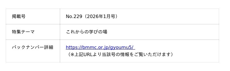 インクルーシブデザインスタジオCULUMU(運営:株式会社STYZ、所在地:東京都渋谷区、代表取締役:田中辰也、以下 CULUMU)は、一般財団法人建築保全センターが発行する機関誌『Re(アール・イー)』2026年1月号(No.229)の特集「これからの学びの場」に寄稿いたしました。