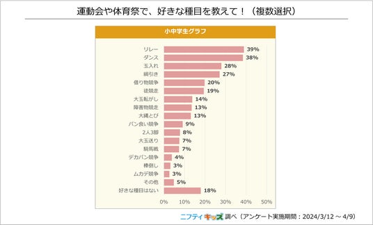 小中学生に人気の種目は1位が「リレー」、僅差で2位に「ダンス」がランクインしました。