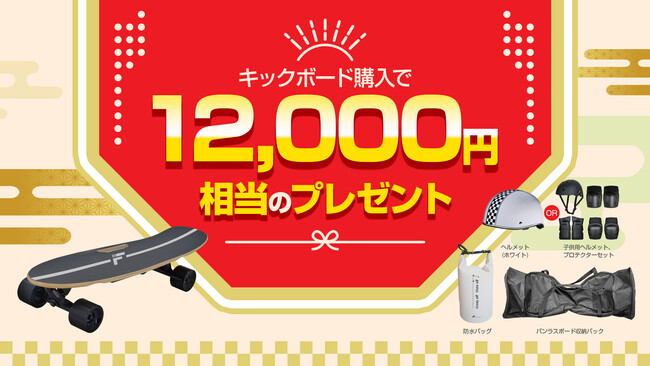 12,000円相当の持ち運びに便利な収納バックとヘルメットorキッズプロテクターをプレゼント!