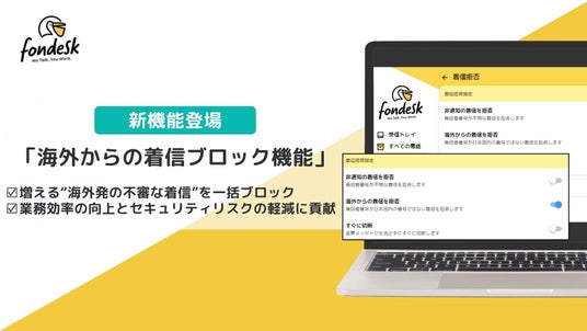 労働力不足問題解決のリーディングカンパニーとして、複数のSaaSを展開する株式会社うるる(東京都中央区 代表取締役社長:星 知也)が提供する電話代行サービス「fondesk(フォンデスク)」は、近年増加している海外からの不審な電話への対策として、新たに「海外からの着信ブロック機能」の提供を開始したことをお知らせいたします。今回の機能追加により、海外からかかってくる電話を一括でブロックできるようになりました。
