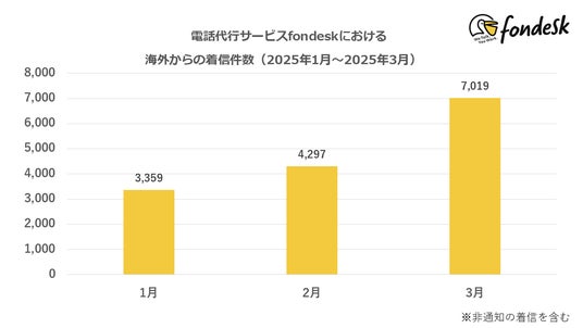 (※2)電話代行サービスfondeskにおける海外からの着信件数(2025年1月~2025年3月)
