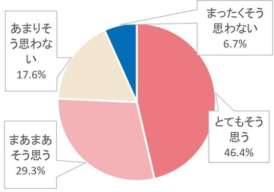 あんふぁん・ぎゅってでは、幼稚園・保育園・こども園に園児がいるパパを対象に(*1)、男性育休に対するアンケートを実施。男性育休を取得したいかという問いについて「とてもそう思う」46.4%、「まあまあそう思う」29.3%と回答。約8割のパパから、男性育休に対する取得意向が見られました。