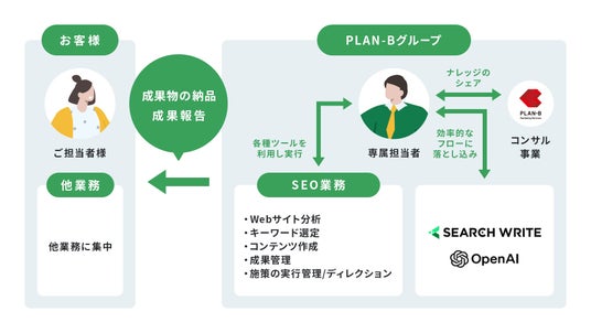 SEOをはじめとしたデジタルマーケティング支援サービスを提供する株式会社PLAN-B(東京都品川区、代表取締役:鳥居本 真徳、以下「当社」)は、 当社が開発・提供するSEOツール「SEARCH WRITE」を活用し、SEOの戦略設計から施策代行までを包括的に支援する「SEARCH WRITE 戦略設計・施策代行プラン」の提供を開始いたしました。