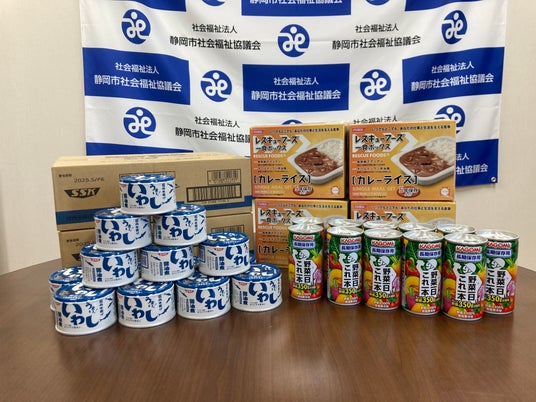 鈴与株式会社(本社:静岡市清水区、取締役社長:鈴木 健一郎)は、地域貢献活動の一環として、非常時の備えとして自社で保管している防災備蓄品の定期入れ替えに伴い生じた、賞味期限前のイワシ缶、野菜ジュースとカレーライス(レスキューフーズ)を静岡市社会福祉協議会へ寄付し、10月2日(水)、その贈呈式を執り行いました。寄付物品については、支援を必要とする方々のもとへ早期に届けていただきます。