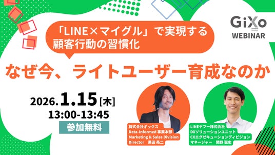 株式会社ギックス(本社:東京都港区、代表取締役CEO:網野知博、以下:当社)は、無料ウェビナー「なぜ今、ライトユーザー育成なのか―「LINE×マイグル」で実現する顧客行動の習慣化 ―」を2026年1月15日(木)に開催いたします。