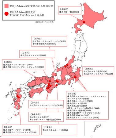 日本M&Aセンターでは、企業成長のさらなる促進・円滑な事業承継・一般市場への上場に向けた体制整備を目的にTOKYO PRO Marketへの上場支援に取り組んでおり、既存上場企業含め全国で100社以上のJ-Adviser契約実績があります。