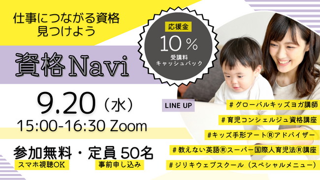 そんなママたちへ。副業や新たなお仕事にもつながる、新しい分野の資格をご紹介する「資格Navi」を開催します。