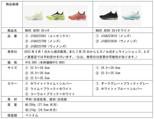 ミズノは、フルマラソン3時間半切りを目指すスピードランナーに向けたランニングシューズ「WAVE AERO 20+R(ウエーブエアロトゥエンティーアール)」を4月1日から順次、全国のミズノランニング品取扱店で発売します。また2月25日からミズノ公式オンラインショップ、ミズノ直営店では予約受付を行います。(なお、発売日は変更の可能性があります。)