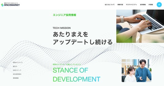 「スペースシェアをあたりまえに」をミッションに掲げる株式会社スペースマーケット(本社:東京都渋谷区、代表取締役社長:重松大輔、以下、スペースマーケット)は、コーポレートサイトのテクノロジーページをリニューアルしました。今回のリニューアルでは、テクノロジーを通じて実現したい未来、開発への想い、開発を支える組織体制などを紹介しています。