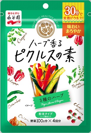 株式会社 永谷園(社長:成田 健一、東京都港区)は、30分漬けておくだけで本格的なピクルスが作れる粉末タイプのピクルスの素、「ハーブ香るピクルスの素 3種のハーブ」、「同 スパイスカレー」(税抜200円)を2023年2月6日(月)より発売いたします。本シリーズは、お好みの野菜と一緒に袋に入れて30分漬けるだけの手軽さで、「野菜をしっかり摂りたいけれど、手間はなるべく減らしたい…」というキモチに応える商品です。粉末タイプなので、調理時のべたつきや漬けた後の残り液が少ないこと、また保管時に場所をとらないのもうれしいポイントです。