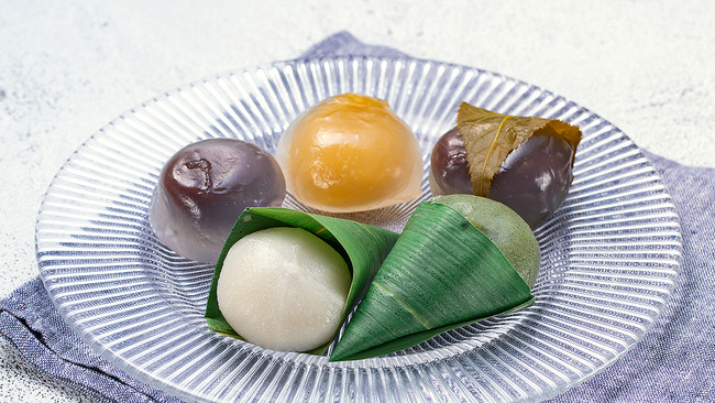 笹餅・笹草餅(つぶあん)・くず餅・くず桜(こしあん)・栗くず餅(栗あん)の5種の涼味菓子を詰め合わせました。