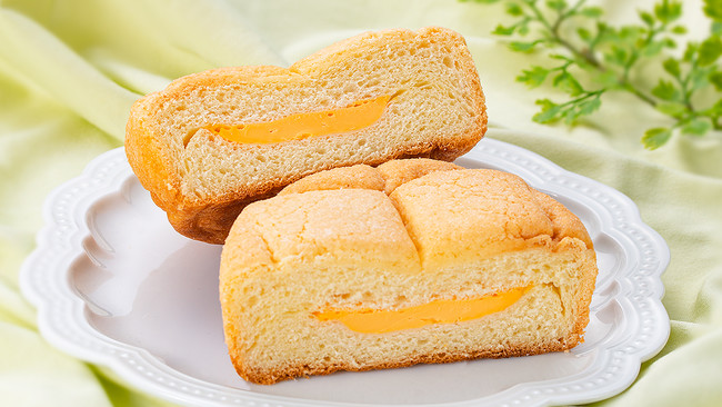 卵風味豊かなデニッシュ生地で、チェダーチーズ入りクリームを包みました。パンの甘さとチーズの塩味が相性抜群です。