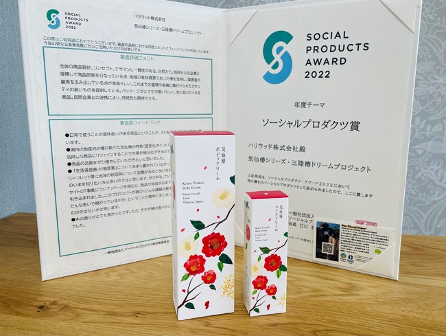 ハリウッド株式会社(本社:東京都港区六本木)が2011年から継続支援を続ける、気仙椿ドリームプロジェクトから生まれた商品『気仙椿クリームシリーズ』が、ソーシャルプロダクトアワード2022 を受賞しました。