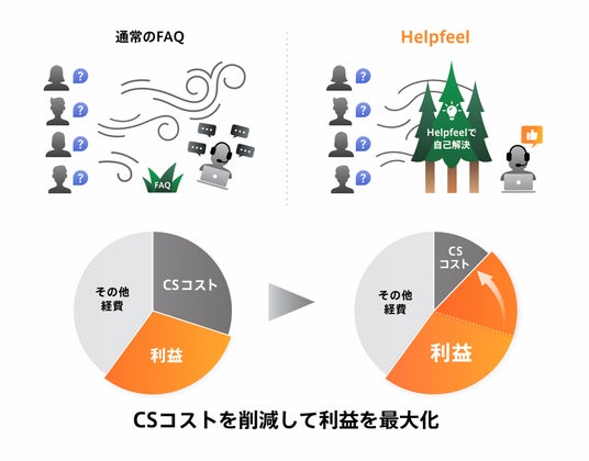 防風林(FAQ)を機能させることで、強風(問い合わせ)の被害を防ぐことが可能です。不要な問い合わせを減らし、カスタマーサポート(CS)を劇的に効率化、CSコストを削減して利益を創出します。