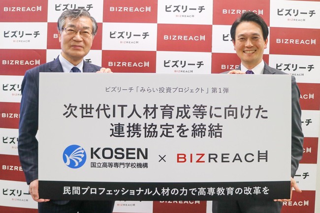 Visionalグループの株式会社ビズリーチ(所在地:東京都渋谷区/代表取締役社長:多田洋祐 以下、当社)と独立行政法人国立高等専門学校機構(所在地:東京都八王子市/理事長:谷口功 以下、高専機構)は、深刻化するIT人材不足などの課題を解決するため、2022年2月9日、新たな社会をけん引する人材の育成を目的とした連携協定を締結したことをお知らせいたします。