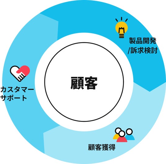 「顧客起点経営(カスタマーレッドグロース)」とは、顧客満足を出発点として、製品開発・顧客獲得・カスタマーサポートなど、企業のあらゆる活動に「顧客のちから」を取り入れる経営手法です。