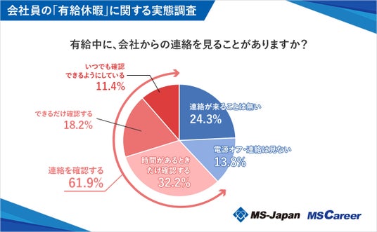 また、有給中の会社からの連絡に関する調査も実施。「6割」が有給中「会社からの連絡を確認する」ことがあることが明らかに。