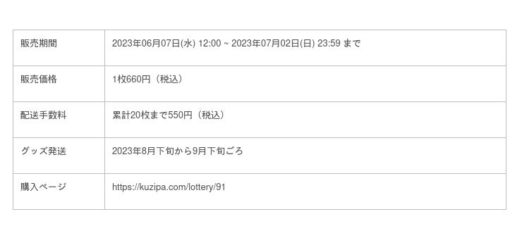 ※当選された商品は、通常のくじの当選商品と同梱し、お届けいたします。