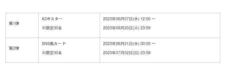 ※規定数は最大数であり、当選者数が規定数に達しない場合でも、抽選期間が終了した場合そのまま終了いたします。