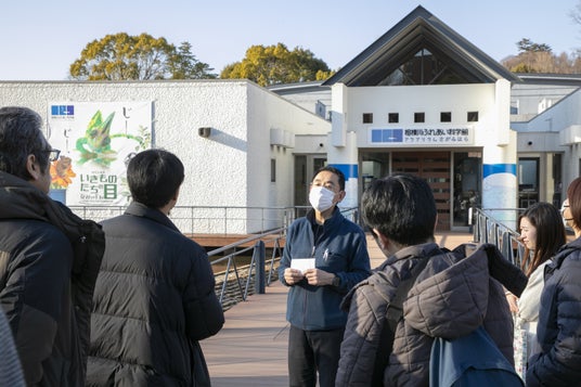 「子どもの施設使用料無料化」対象施設でもある本施設では、コイなどの川魚に餌やりができる「お魚にごはん」が大人気で、これを目的に毎日のように来館する子どもだちもいるそうです。ツアー参加者にも餌やりを楽しんでもらい、川魚の迫力を体感していただきました。
